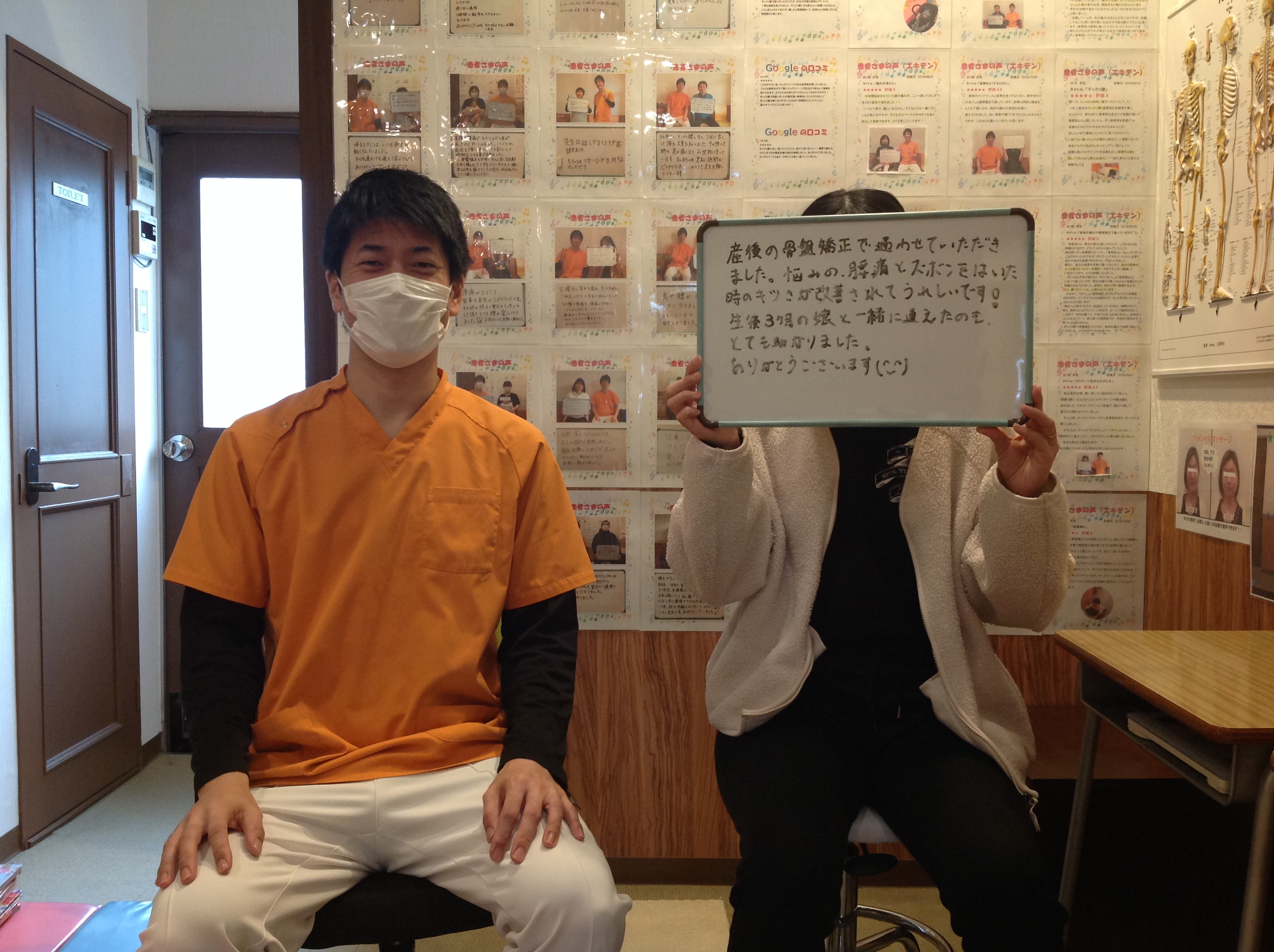 産後の骨盤矯正で体重↓、腰痛改善とズボンがはきやすくなった